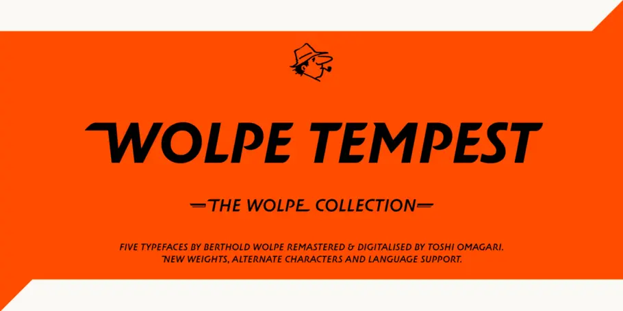 Wolpe Tempest forma parte de la familia de tipos de letra The Wolpe Collection y, al igual que su diseño original, se desmarca de los diseños formales y estáticos de las tipografías de palo seco en cursiva. The Wolpe Collection conmemora la sobresaliente obra de Berthold Wolpe, e incluye cinco tipos de letra emblemáticas, digitalizadas y actualizadas por Toshi Omagari, de Monotype Studio.