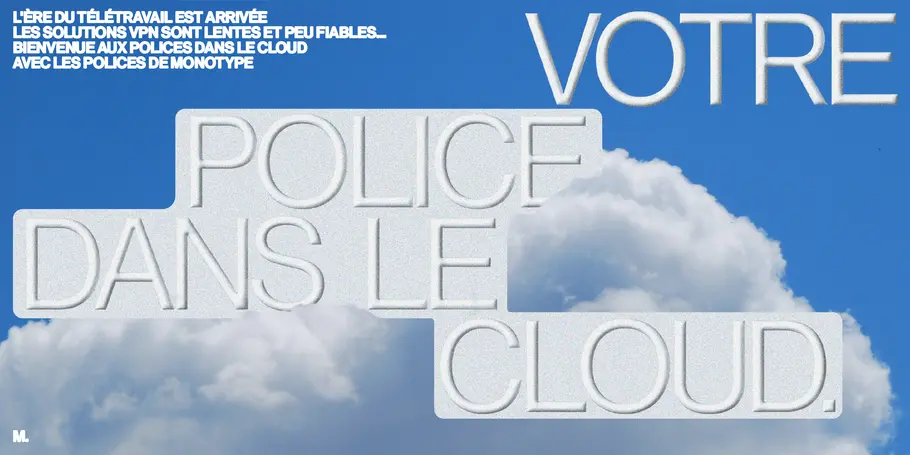 Une solution basée sur le cloud résout tous les problèmes liés à l’utilisation d’un VPN pour travailler avec les polices de caractères. Elle permet l’accès à une vaste bibliothèque de polices, partout où les membres de votre équipe se trouvent et dès qu’ils en ont besoin.