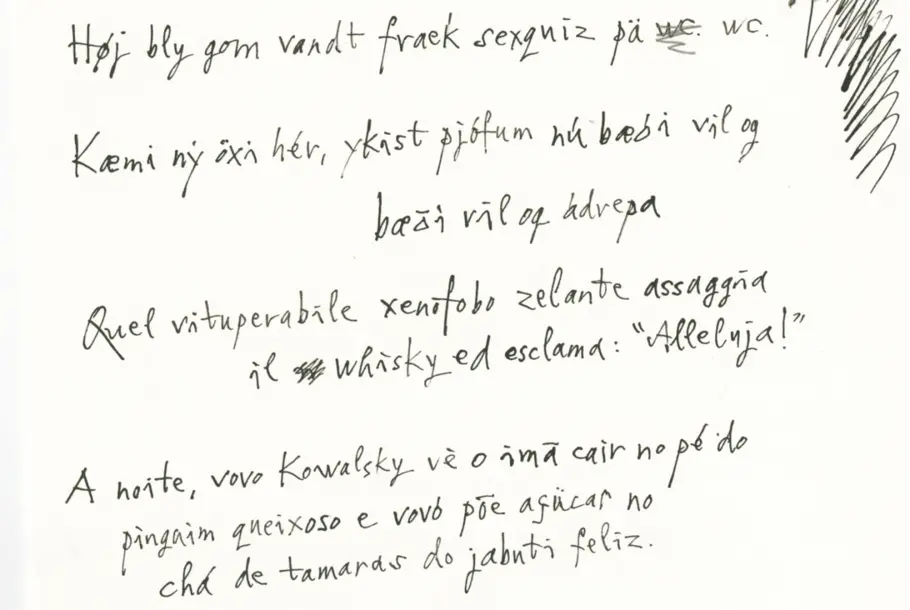 Each of the alternate characters was selected on the basis of size, similarity and clarity: not being too large or small, not too similar, the ink not too smudged. Where needed, additional glyphs for characters that couldn’t be captured consistently, mainly non-English letters and uncommon symbols that occur infrequently, were drawn in Blake’s style. The overall appearance needed to be natural: “I didn’t want anything to look too unique, especially in the vowels which appear more frequently, because people would notice the ones that stand out, notice them repeated, and realise it’s a font,” adds Toshi. “It had to look random, and it had to hide the fact that it’s not his actual handwriting.”